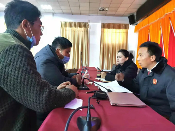 為外出務(wù)工人員“一對一”答疑法律知識。圖片由拉孜縣宣傳部提供