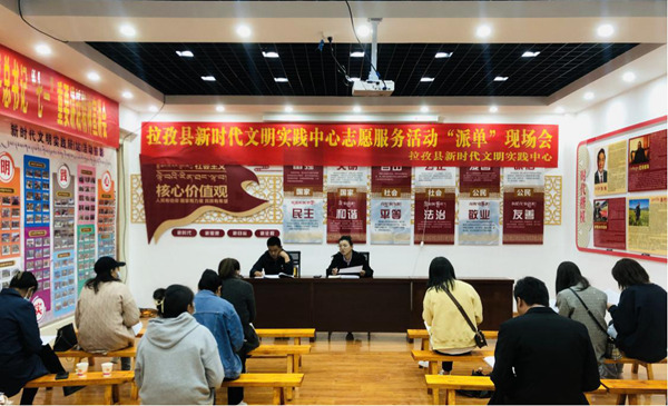 志愿服務(wù)活動“派單”現(xiàn)場會。圖片由拉孜縣宣傳部提供