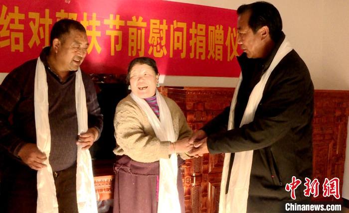 圖為米林家庭農(nóng)場負責人慰問結(jié)對幫扶對象。平措旺青供圖