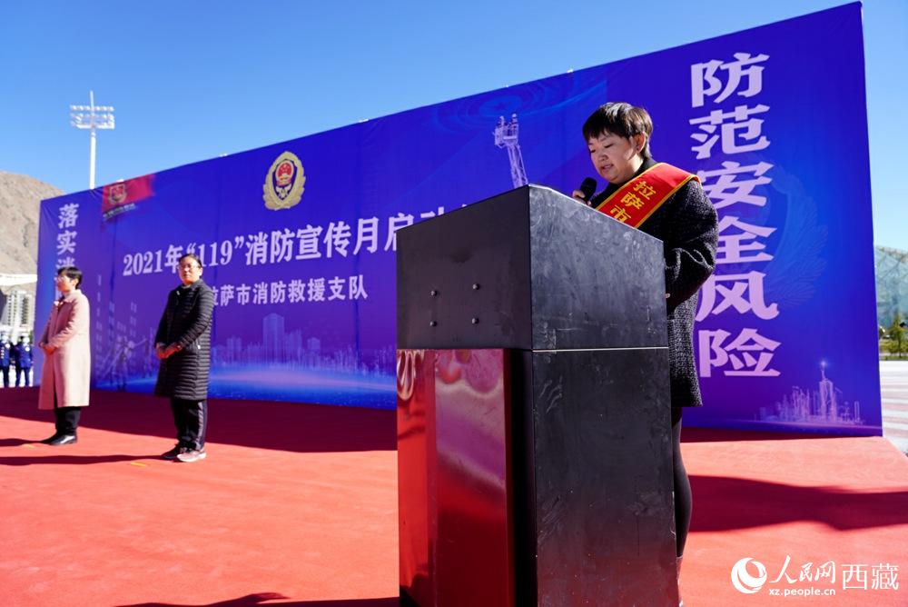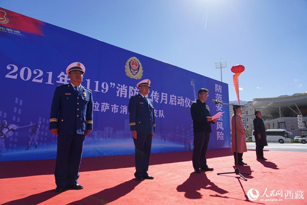 拉薩市2021年“119”消防宣傳月啟動儀式現(xiàn)場。人民網(wǎng) 次仁羅布