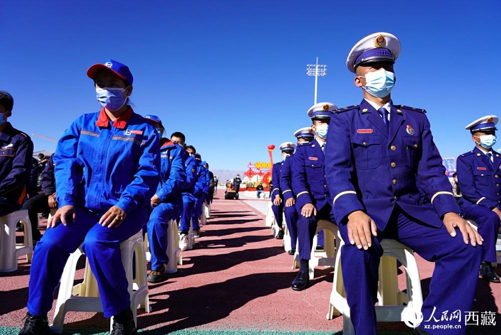 拉薩市2021年“119”消防宣傳月啟動儀式現(xiàn)場。人民網(wǎng) 次仁羅布攝