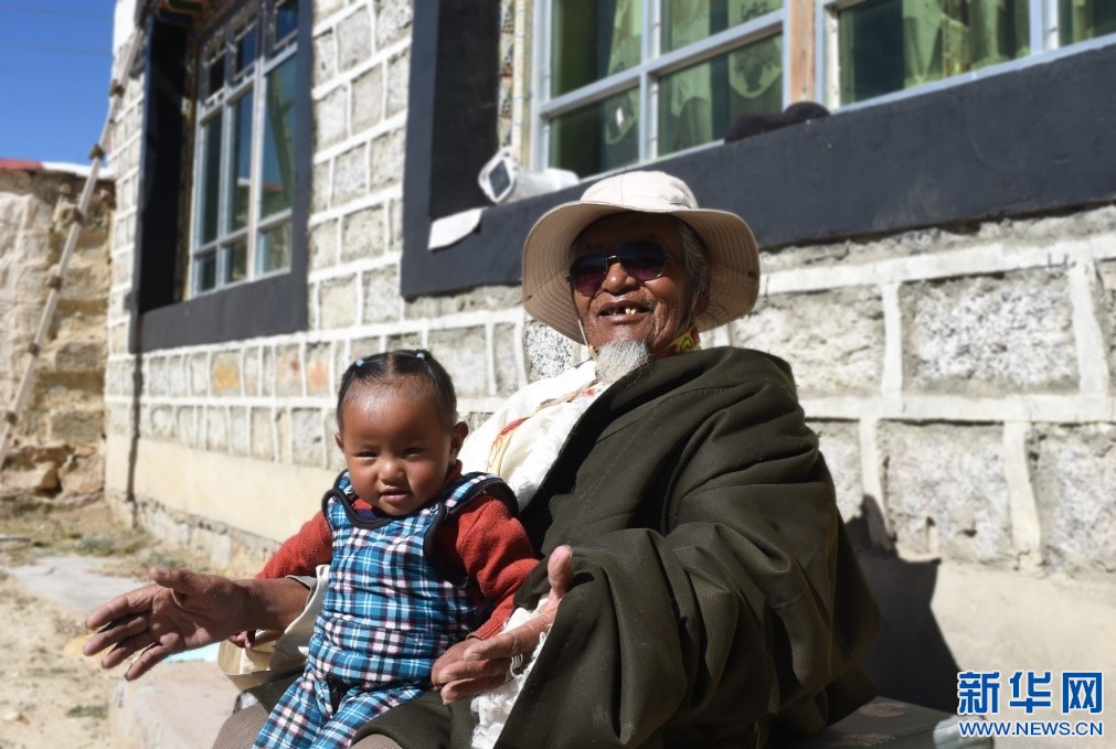 10月30日,扎塔老人和孫女在院子里曬太陽(yáng)。新華網(wǎng) 旦增努布 攝