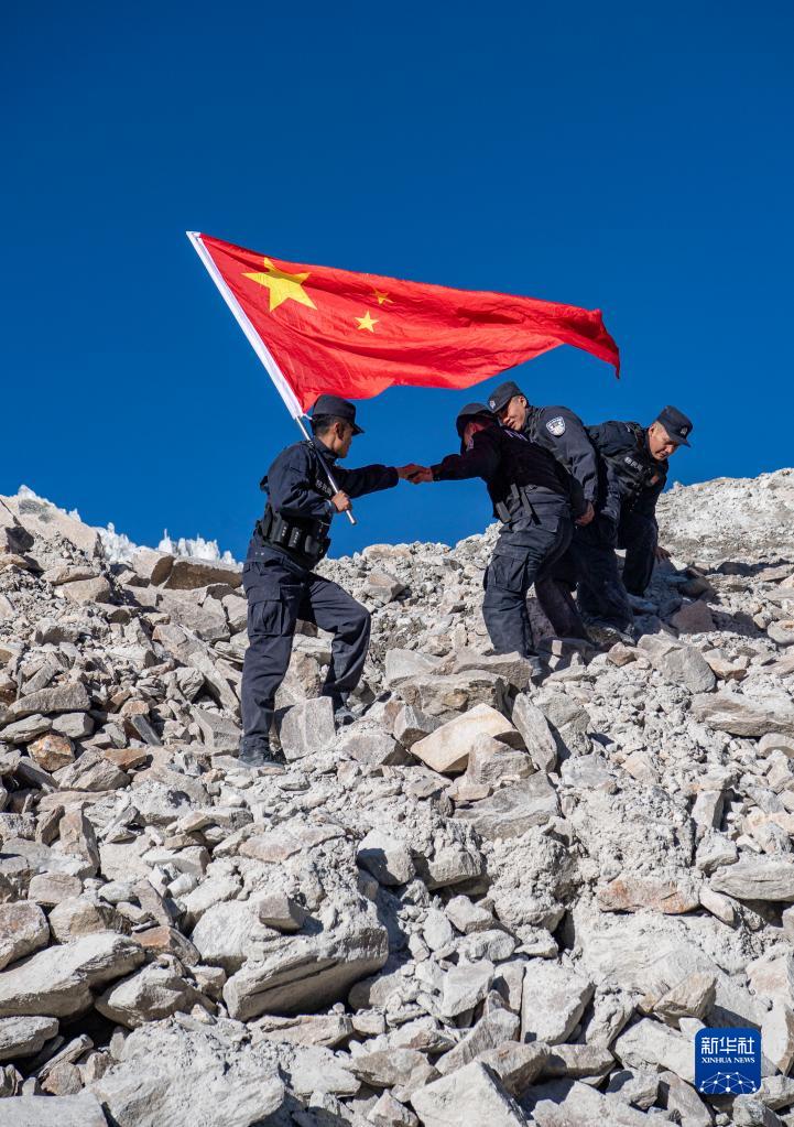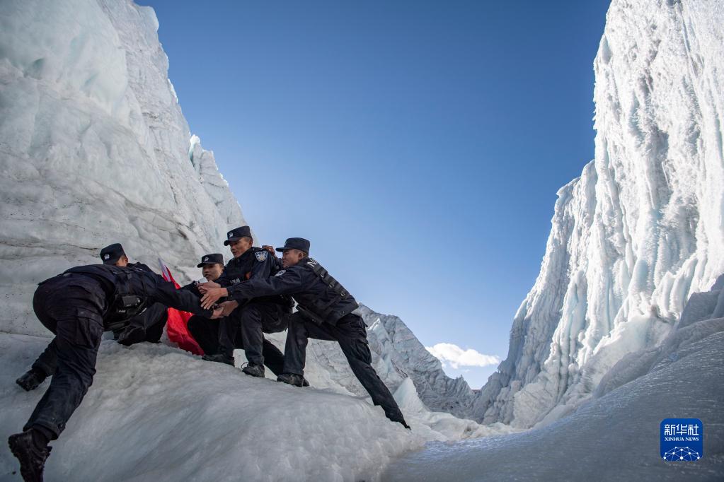 守護國土是神圣的使命。民警們常在中國和不丹的邊境地區(qū)巡邏,那里冰川密布,碎石路下往往暗藏冰裂縫。巡邏途中,民警們會熱心幫助前來求助的牧民群眾?!班l(xiāng)親們有困難總是會想到我們?!泵窬⑼酱胝f。
