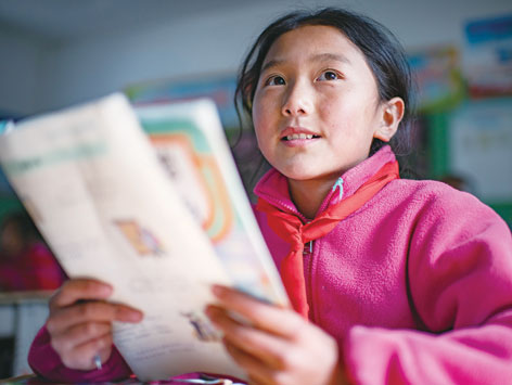 陳塘鎮(zhèn)小學三年級學生旺姆在讀課文(11月24日攝)。 普布扎西、格桑邊覺、孫瑞博攝