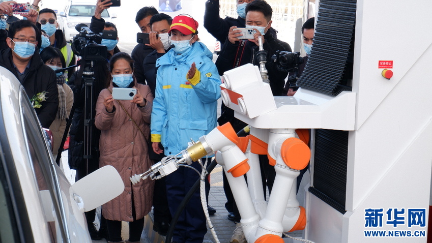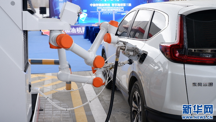 12月29日,加油機(jī)器人為汽車(chē)加油。伍世偉 攝(新華網(wǎng) 發(fā))