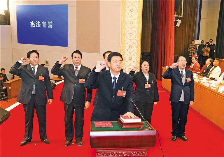 根據(jù)《全國人民代表大會常務委員會關(guān)于實行憲法宣誓制度的決定》及《西藏自治區(qū)實施憲法宣誓制度辦法》,7日上午,自治區(qū)十一屆人大五次會議舉行憲法宣誓儀式。