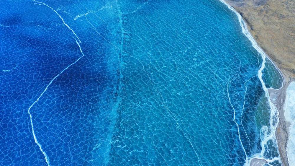 位于西藏山南市洛扎縣和浪卡子縣交界處的普莫雍錯,是喜馬拉雅山脈間的一個咸水湖,湖面海拔5070m。冬季的普莫雍錯湖面會結(jié)冰,冰面通透可見湖底,在陽光的照射下,呈現(xiàn)出動人心魄的藍。