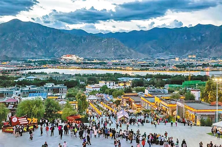 夜色漸濃,位于拉薩河畔寶瓶山上的文成公主劇場(chǎng),被成片的火燒云染成了耀眼的橙,熙攘人潮,暮色流光,劇場(chǎng)下方的慈覺(jué)林藏院風(fēng)情街更是人潮涌動(dòng)。近年來(lái),隨著冬季旅游政策的不斷推進(jìn),有效促進(jìn)了西藏全季、全時(shí)旅游的發(fā)展,而處于夏季旅游黃金時(shí)期的西藏旅游則更加火爆。作為西藏文化旅游的靚麗名片,《文成公主》實(shí)景劇引來(lái)了更多游客前來(lái)觀看。