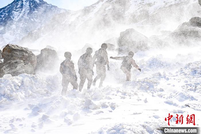 標沙拉錯哨點官兵艱難行走在風雪中?!⒅镜?攝