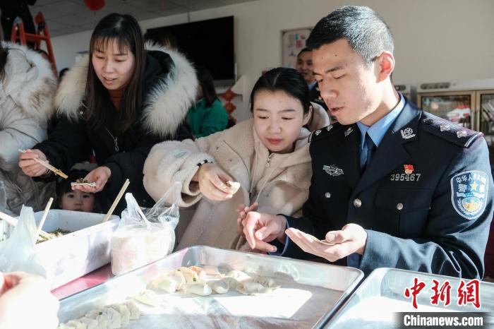 30日上午,參加活動的戍邊民警、家屬在支隊食堂一起貼春聯(lián)、包餃子、掛紅燈籠等,羅永超和妻子、兒子及母親也參與其中,參加活動的孩子們也學(xué)著大人的模樣,將肉餡放進(jìn)餃子皮,包起了餃子。食堂內(nèi)歡聲笑語,充滿節(jié)日氣氛。