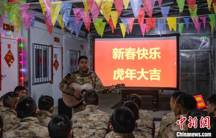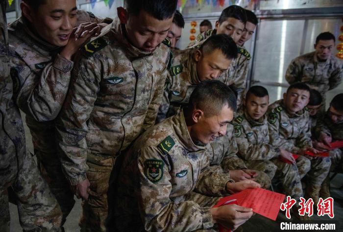 聯(lián)歡的尾聲指導(dǎo)員夏邦國(guó)拿著最后的彩袋走到臺(tái)前,把晚會(huì)推向高潮,“兄弟們,這還有一大袋紅包,里面裝著的可是最珍貴的祝?!?。官兵們用抽盲盒的形式拆開(kāi)新年的“紅包”。中士趙路寬抽到一個(gè)最鼓的,打開(kāi)是滿滿的糖果;下士吳兵拆開(kāi)的是一個(gè)帶有小機(jī)關(guān)的新年賀卡;下士鄧云川拆到一封遠(yuǎn)方的匿名信,“雖不曾相見(jiàn)與相識(shí),但知道是你們?cè)谀瑘?jiān)守付出,守衛(wèi)著祖國(guó)的雪域邊防”。伴隨著他磕絆的普通話,連隊(duì)官兵漸漸安靜下來(lái)?!斑呹P(guān)有我,請(qǐng)祖國(guó)和人民放心”,簡(jiǎn)易投影的大屏上開(kāi)始播放著官兵們一年多來(lái)頂風(fēng)冒雪,戰(zhàn)天斗地的光影片段,在這大山里的多少的苦累酸甜,都已經(jīng)鐫刻在茫茫雪域。