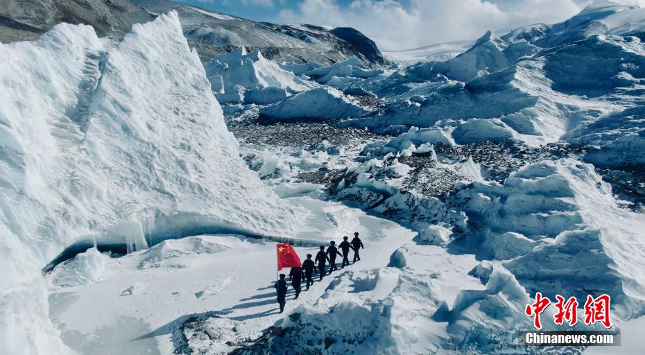 圖為普瑪江塘邊境派出所移民管理警察在邊境冰川開展巡邏。 徐道超 攝