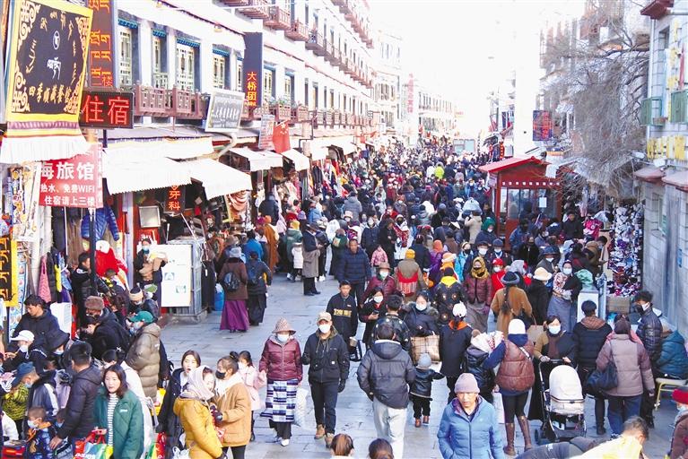 沖賽康市場、八廓商城、拉薩市區(qū)各大小超市……熱鬧非凡、人頭攢動,處處都是為了采購藏歷新年年貨樂此不疲的居民群眾,耳邊盡是熟悉的吆喝聲,到處都是歡樂與喜慶。