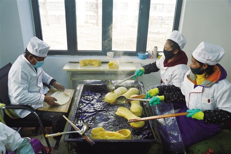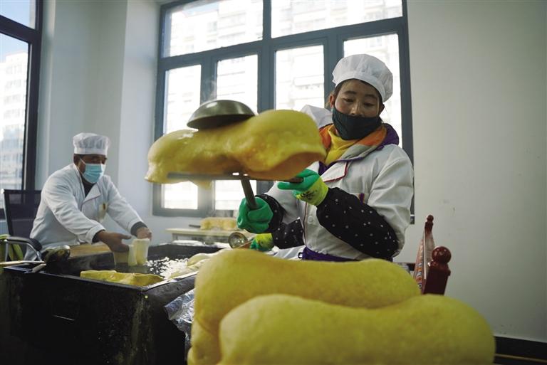 為了保證“德卡”與“卡賽”的品質(zhì),恩惠苑社區(qū)還提前聯(lián)系拉薩市墨竹工卡縣訂購面粉與食用油,確保原材料的安全與口感?!盀榱嗽黾愉N量,我們提前對接了一些社區(qū)居委會和商戶,并低價對內(nèi)銷售,讓我們社區(qū)的搬遷群眾也能夠低價購買到年貨?!贝稳拾椭檎f。