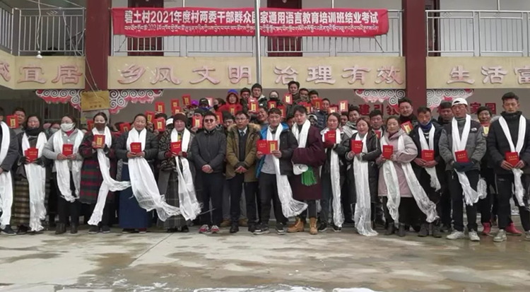 打造“領(lǐng)頭雁”,輻射帶動群眾共同進(jìn)步?!皻q歲鬧元宵,轟天鑼鼓敲”,進(jìn)一步讓“學(xué)習(xí)”之風(fēng)在基層助力“好學(xué)”之苗生根發(fā)芽,工作隊在元宵節(jié)開展“2021年度國家通用語言教育培訓(xùn)結(jié)業(yè)典禮”,從全村116名參訓(xùn)人員中評選出“學(xué)習(xí)之星”1名,“進(jìn)步之星”2名進(jìn)行表揚(yáng)表彰,樹立學(xué)習(xí)榜樣,激勵對標(biāo)對表,努力學(xué)習(xí)國家通用語言文字,有利于促進(jìn)各民族交往交流交融。