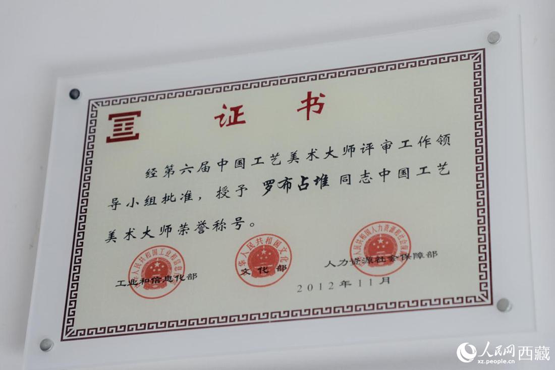 2012年傳承人羅布占堆獲中國工藝美術大師稱號。人民網 次仁羅布攝