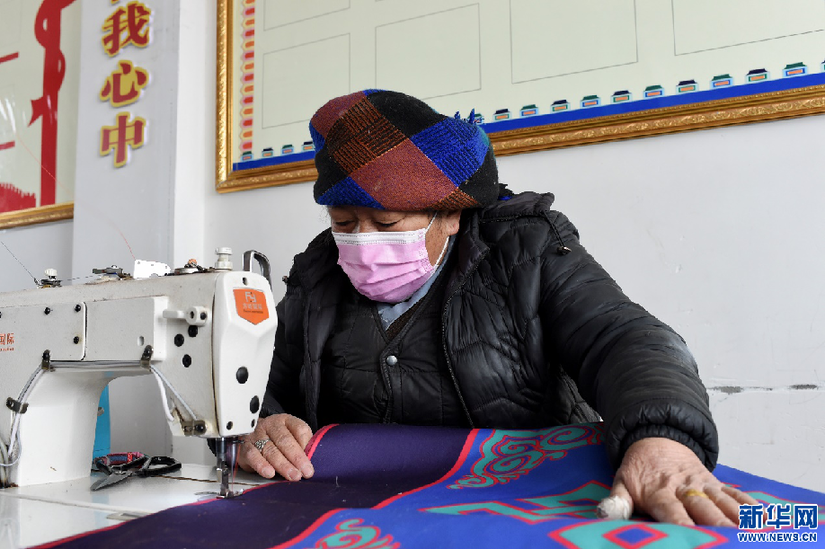 2月24日,三有村群眾在縫紉車間工作。新華網 旦增努布 攝