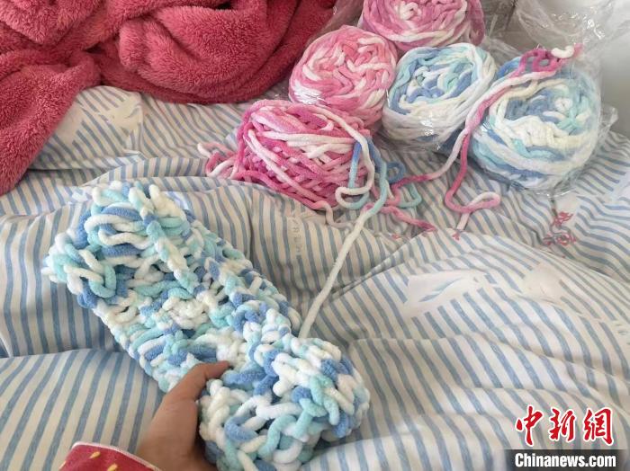 圖為彭茜在醫(yī)院織圍巾。彭茜 攝