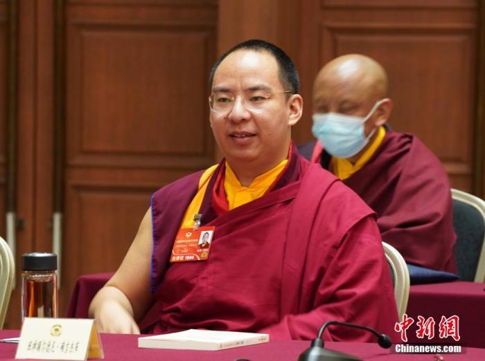 圖為3月9日,班禪額爾德尼·確吉杰布參加全國政協(xié)十三屆五次會議宗教界小組會議。中新社記者 李晗雪 攝