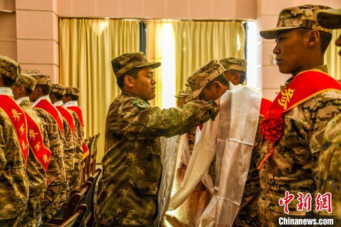 圖為為入伍新兵獻(xiàn)哈達(dá)。朱呈 攝