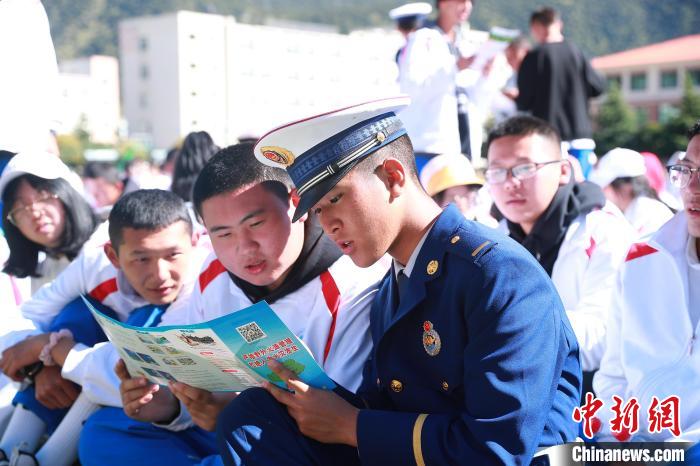 圖為林芝市森林消防支隊走進校園宣傳防火知識。西繞拉翁 攝