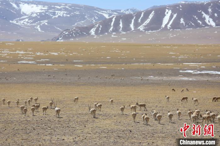 圖為3月27日,西藏改則縣先遣鄉(xiāng)附近的藏羚羊種群。邊巴 攝