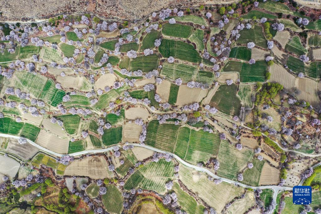 西藏林芝市巴宜區(qū)布久鄉(xiāng)朵當(dāng)村桃花園(3月28日攝,無人機(jī)照片)。新華社記者 洛卓嘉措 攝