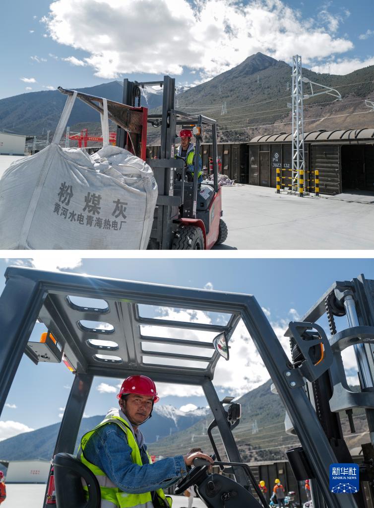 拼版照片:上圖為3月29日,邊巴在林芝站貨場(chǎng)搬運(yùn)貨物;下圖為邊巴在駕駛叉車。朵當(dāng)村的村民邊巴跟人合伙開了一家物流公司,將抵達(dá)火車站的飼料、日用百貨、建筑材料等運(yùn)往林芝各地,他每天都會(huì)通過微信召集周邊的年輕人來貨場(chǎng)干活。邊巴說,他對(duì)未來充滿希望,拉林鐵路貨運(yùn)量不斷增加,自己和村民的收入會(huì)越來越好。新華社記者 洛卓嘉措 攝