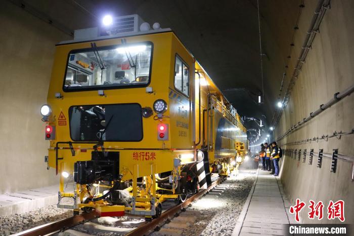 圖為鐵路大型養(yǎng)路機械搗固車在西藏拉林鐵路隧道內(nèi)。祁國慶 攝