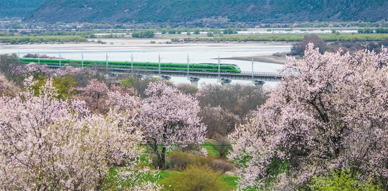 拉林鐵路迎來通車運(yùn)營以來的第一個(gè)春天。復(fù)興號(hào)動(dòng)車每日穿梭于雅魯藏布江畔的層巒疊嶂間,與兩岸盛開的桃花共同構(gòu)成一幅優(yōu)美畫卷。