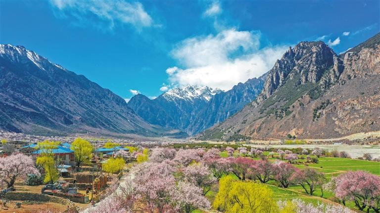 每年桃花盛放的時節(jié),尼屋鄉(xiāng)都會舉辦“尼屋桃花節(jié)”。在雪山環(huán)抱、植被蒼翠的高山峽谷間,映著桃花的點綴,村莊美不勝收。