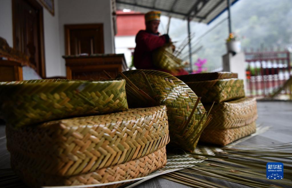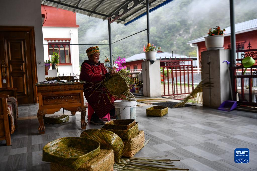 巴登村村民在家編織竹筐(4月15日攝)。新華社記者 晉美多吉 攝