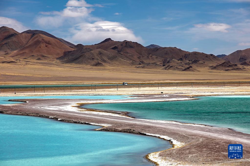 這是位于西藏自治區(qū)阿里地區(qū)改則縣的物瑪錯(cuò),湖水呈現(xiàn)出不同顏色(2022年4月12日攝)。新華社記者 姜帆 攝