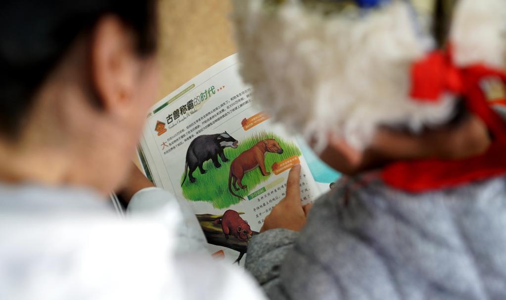 西藏自治區(qū)圖書(shū)館兒童閱覽室內(nèi),家長(zhǎng)和孩子一起閱讀繪本(2018年2月攝)。新華社記者晉美多吉攝