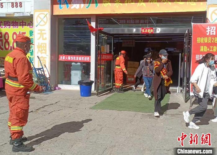 圖為日喀則市森林消防大隊(duì)開(kāi)展火災(zāi)疏散演練。 洛桑頓珠 攝