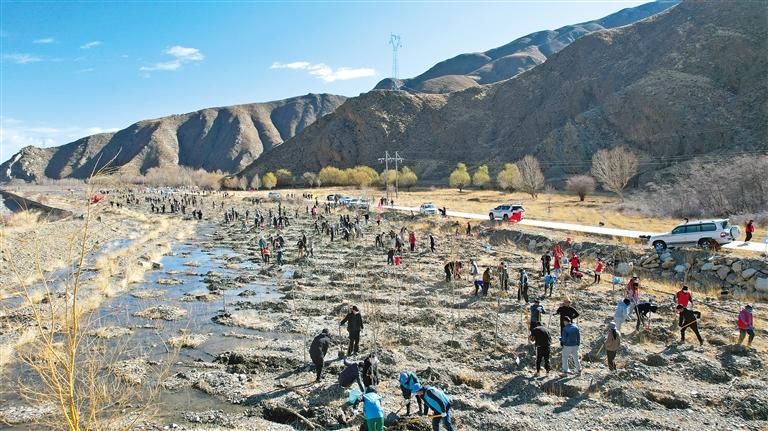 圖為近日,瓊結縣組織黨員干部開展植樹造林活動。通訊員 倫珠澤仁 記者 洛桑 攝
