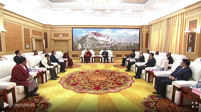 近日,西藏自治區(qū)黨委書(shū)記王君正在拉薩會(huì)見(jiàn)班禪額爾德尼·確吉杰布。 自治區(qū)領(lǐng)導(dǎo)洛桑江村、莊嚴(yán)、陳永奇、嘎瑪澤登、達(dá)娃次仁、甲熱·洛桑旦增、珠康·土登克珠、薩龍·平拉、索朗仁增一同會(huì)見(jiàn)。