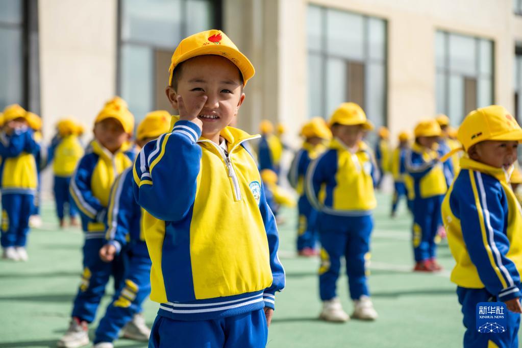 在西藏自治區(qū)山南市貢嘎縣森布日村,霍黨生在幼兒園準備跳課間操(3月22日攝)。新華社記者 周荻瀟 攝