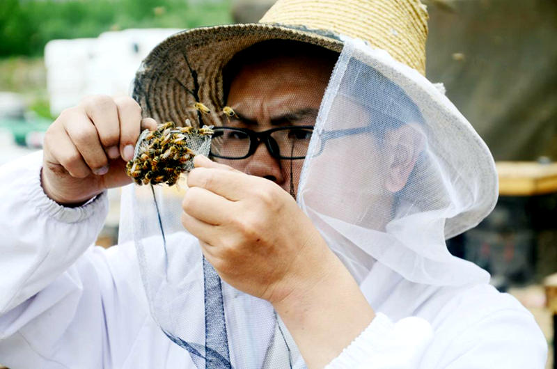 起初,鮮有人看好他規(guī)劃的蜜蜂事業(yè)。“以前這里沒(méi)有養(yǎng)蜜蜂的,所以很多人都不理解?!钡@沒(méi)能阻擋他前進(jìn)的腳步。從最初20箱蜜蜂拓展到如今的2000箱,從一頂簡(jiǎn)陋的帳篷到現(xiàn)在初具規(guī)模的蜜蜂文化主題生態(tài)體驗(yàn)園,張亮富用了7年時(shí)間,讓當(dāng)?shù)匕傩湛吹搅诉@項(xiàng)“甜蜜”事業(yè)帶來(lái)的希望。