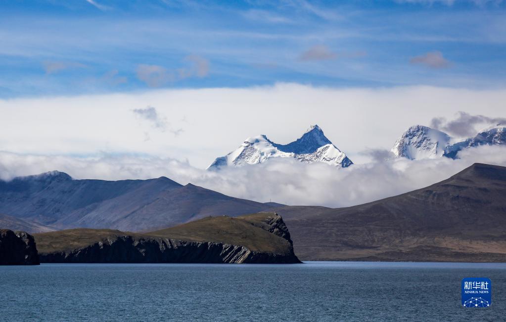 這是5月1日在西藏山南市從白瑪林錯(cuò)方向拍攝的庫拉崗日冰川(手機(jī)照片)。新華社記者 沈虹冰 攝