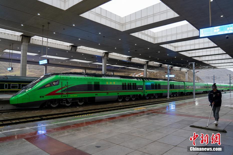 6月25日,西藏第一條電氣化鐵路——拉林鐵路開(kāi)通運(yùn)營(yíng)滿一周年。一年來(lái),累計(jì)運(yùn)送旅客113.7萬(wàn)人次、貨物4.78萬(wàn)噸。圖為當(dāng)日,拉薩火車站內(nèi),復(fù)興號(hào)整裝待發(fā)。 中新社記者 江飛波 攝