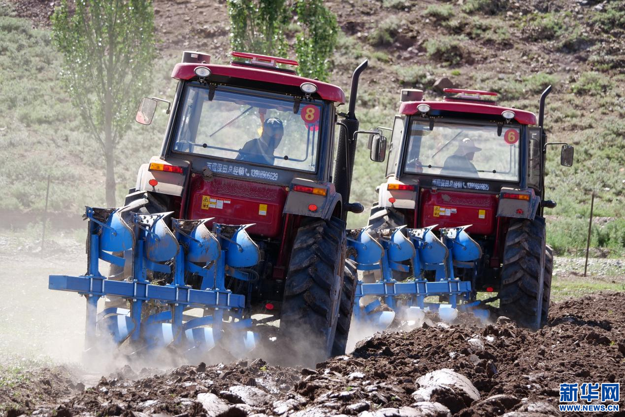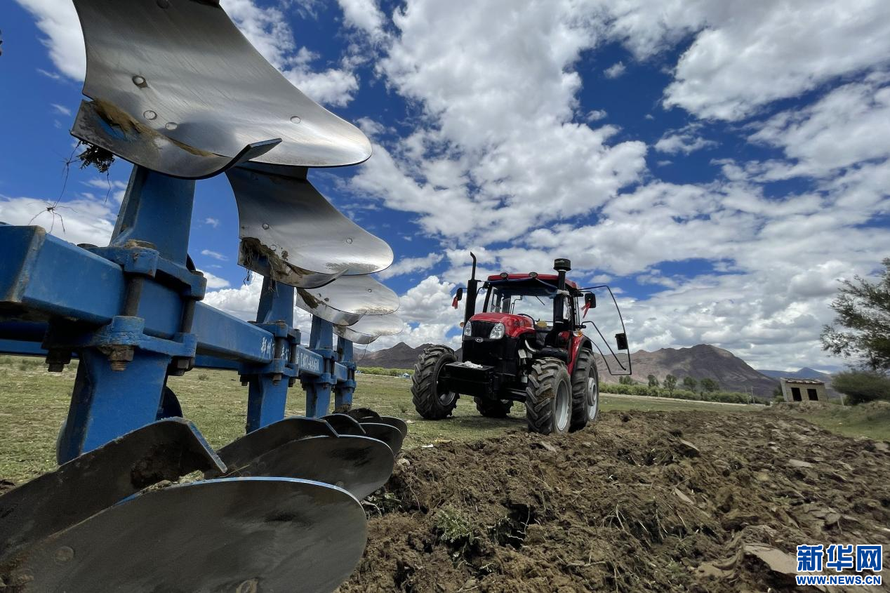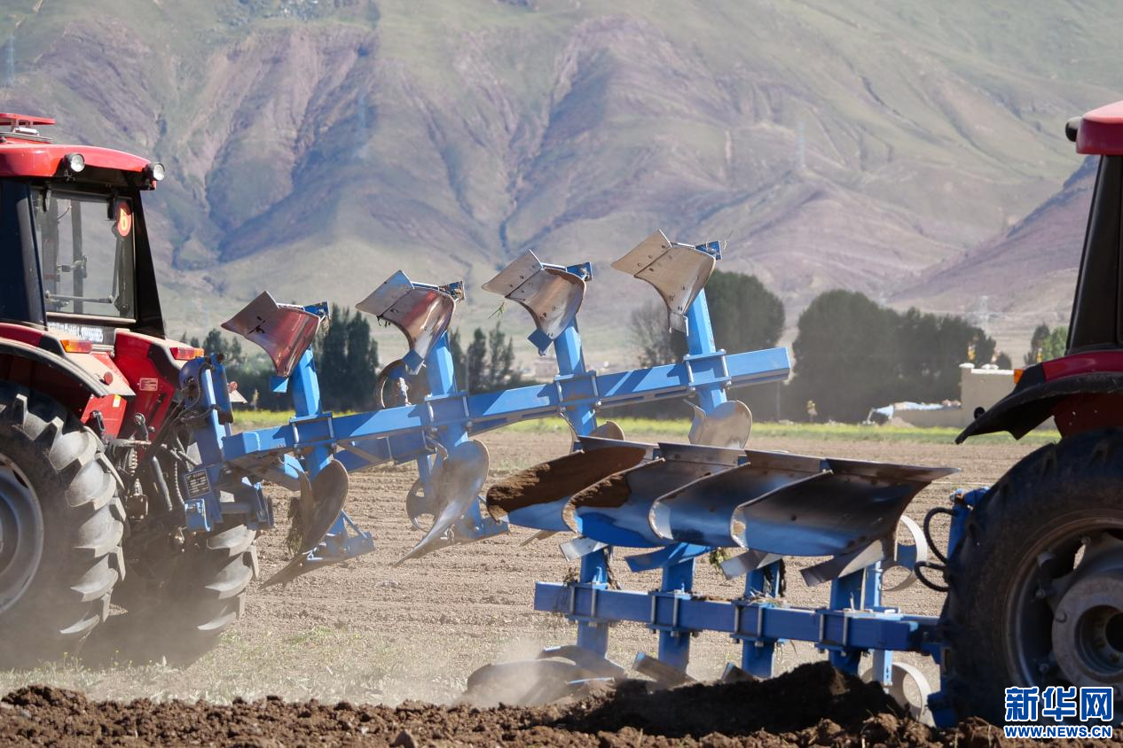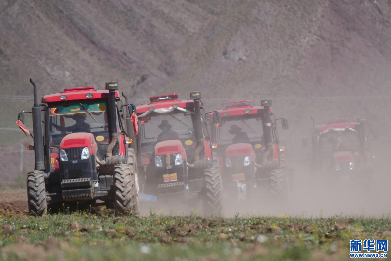 6月20日,甘曲鎮(zhèn)江角村農機合作社的農機在進行播種。新華網 旦增努布 攝