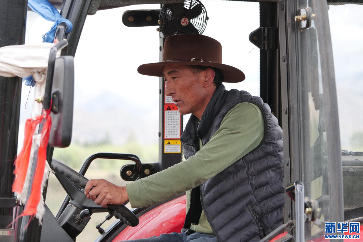 6月20日,甘曲鎮(zhèn)江角村農機合作社負責人米瑪在駕駛農機。新華網 旦增努布 攝