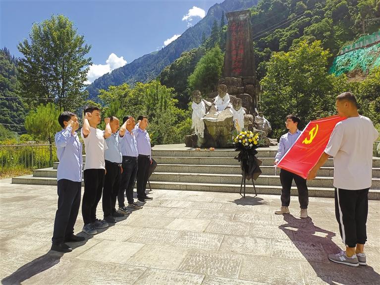7月1日,中交二公局西藏項目黨支部組織黨員、預(yù)備黨員、入黨積極分子,前往波密紅樓、“川藏線上十英雄”紀念碑等地開展慶祝建黨101周年主題黨日活動,引導(dǎo)黨員干部自覺錘煉黨性,增強服務(wù)意識、感悟初心、傳承使命。 圖為該支部黨員在“川藏線上十英雄”紀念碑前重溫入黨誓詞。林芝采訪組 攝