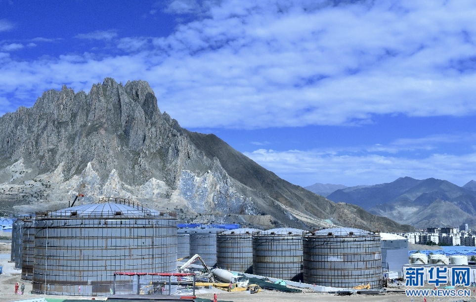 圖為725油庫(kù)罐容改造項(xiàng)目9具新建儲(chǔ)罐(6月30日攝)。新華網(wǎng) 旦增努布 攝