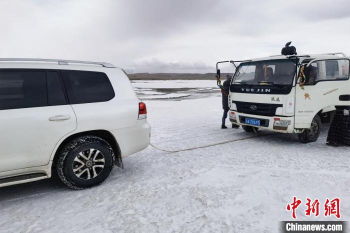 這段路前100公里是公路,后400多公里是碎石路。好在運(yùn)氣不錯,天氣較冷,沼澤泥路還沒有化凍,車輛通過性比較高。即便如此,一些地方貨車還是會陷進(jìn)泥潭,需要用小車拖拽才能前行??斓秸军c(diǎn)附近有一條河,只能憑大致方向牽引著貨車前進(jìn),這是整個路程中最難走的一段。全程走了近12個小時,回想這500多公里的路程,馬洪杰還是心有余悸。