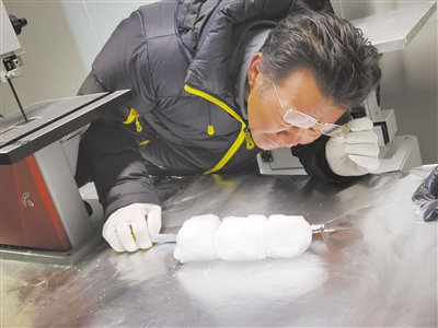 中國科學(xué)院青藏高原研究所研究員徐柏青在拉薩冰芯庫測(cè)量分析樣品受訪者供圖