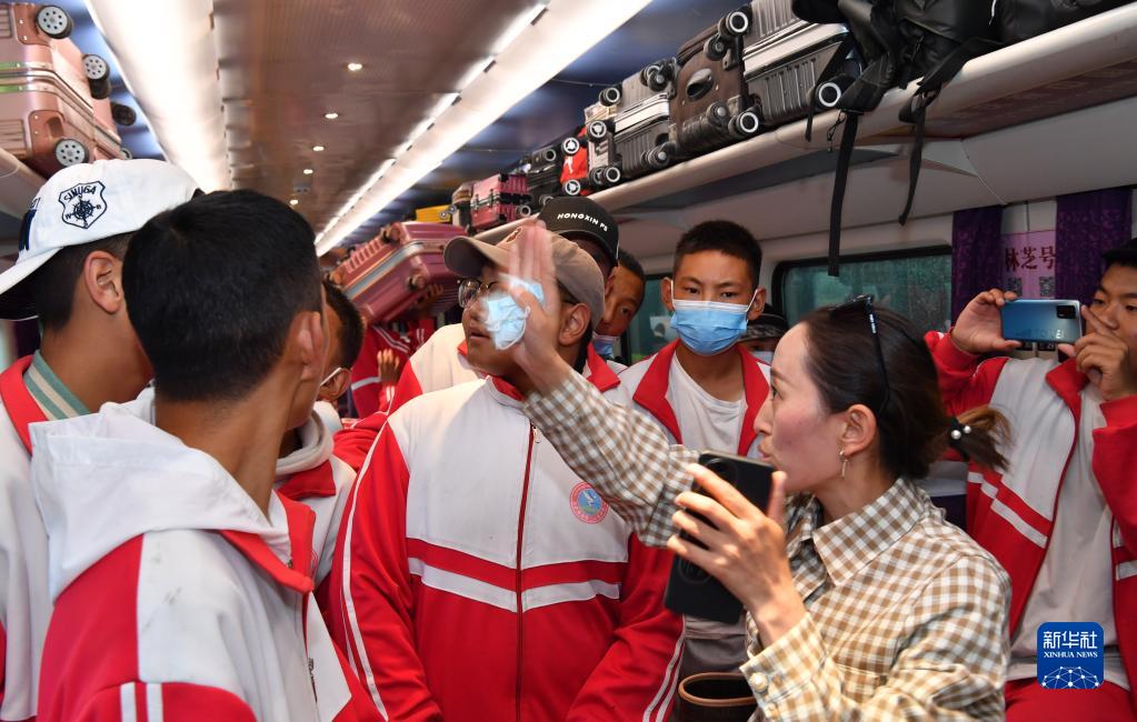 當(dāng)日,在拉薩上學(xué)的那曲市815名學(xué)生乘坐中國鐵路青藏集團(tuán)公司安排的專列返鄉(xiāng),回到草原享受暑假生活。