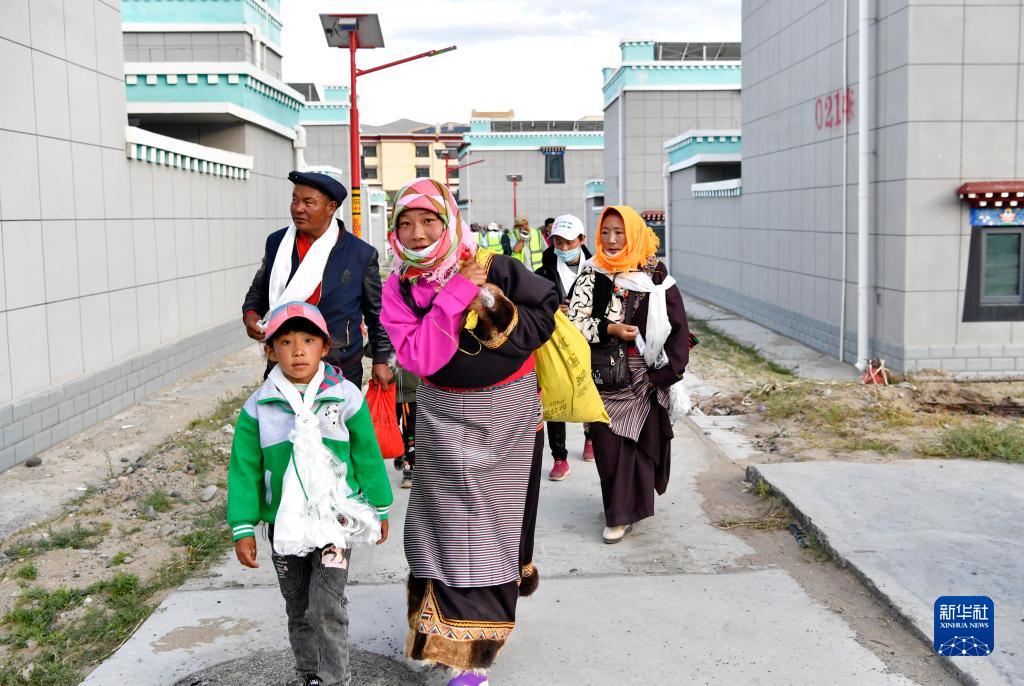 剛剛抵達(dá)森布日安置點(diǎn)的雙湖縣牧民正前往新家(7月19日攝)。新華社記者 張汝鋒 攝