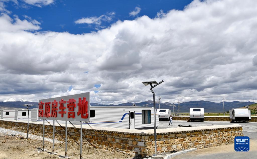 山南市措美縣哲古鎮(zhèn)房車營地一角(7月12日攝)。新華社記者 張汝鋒 攝